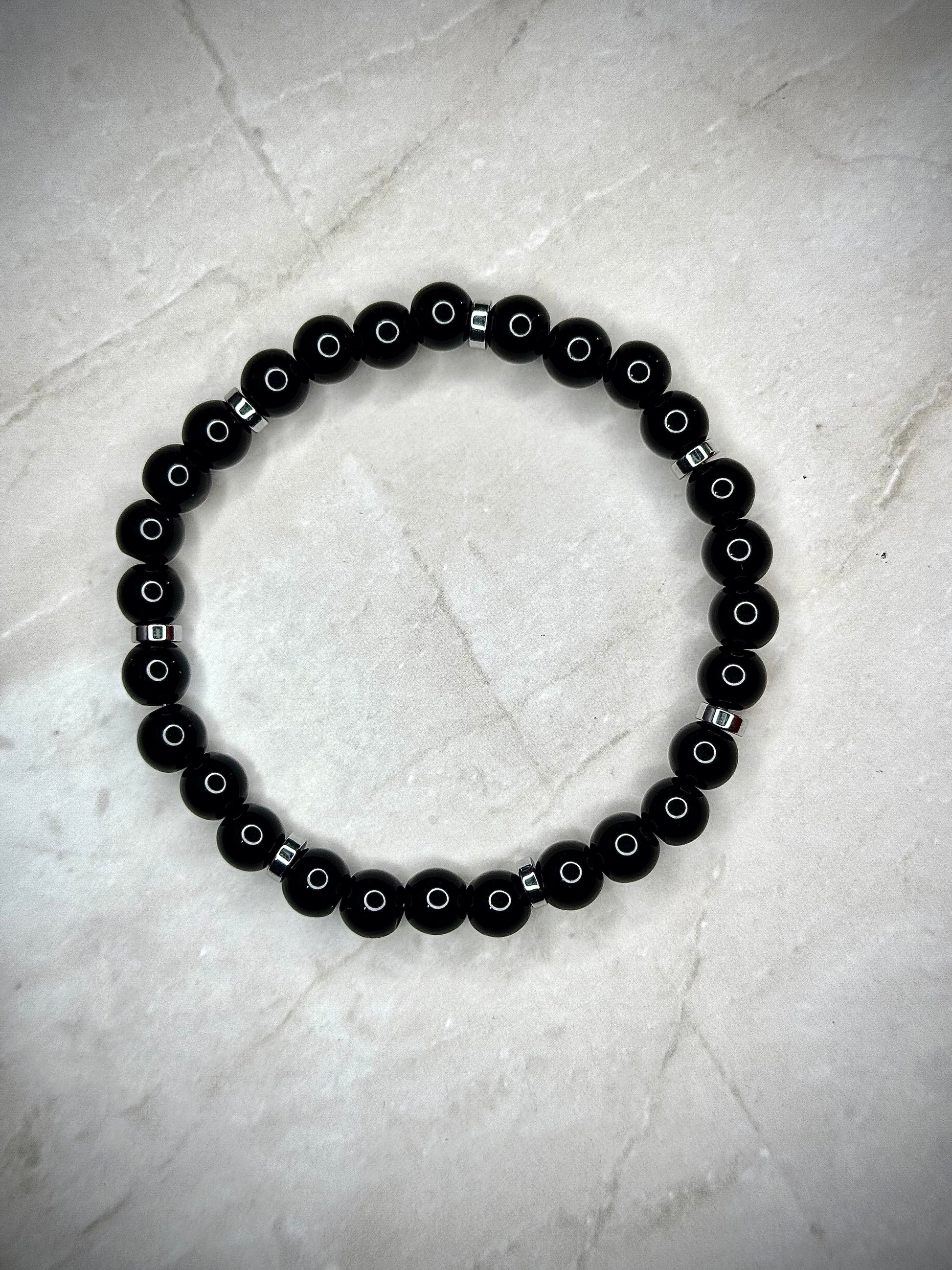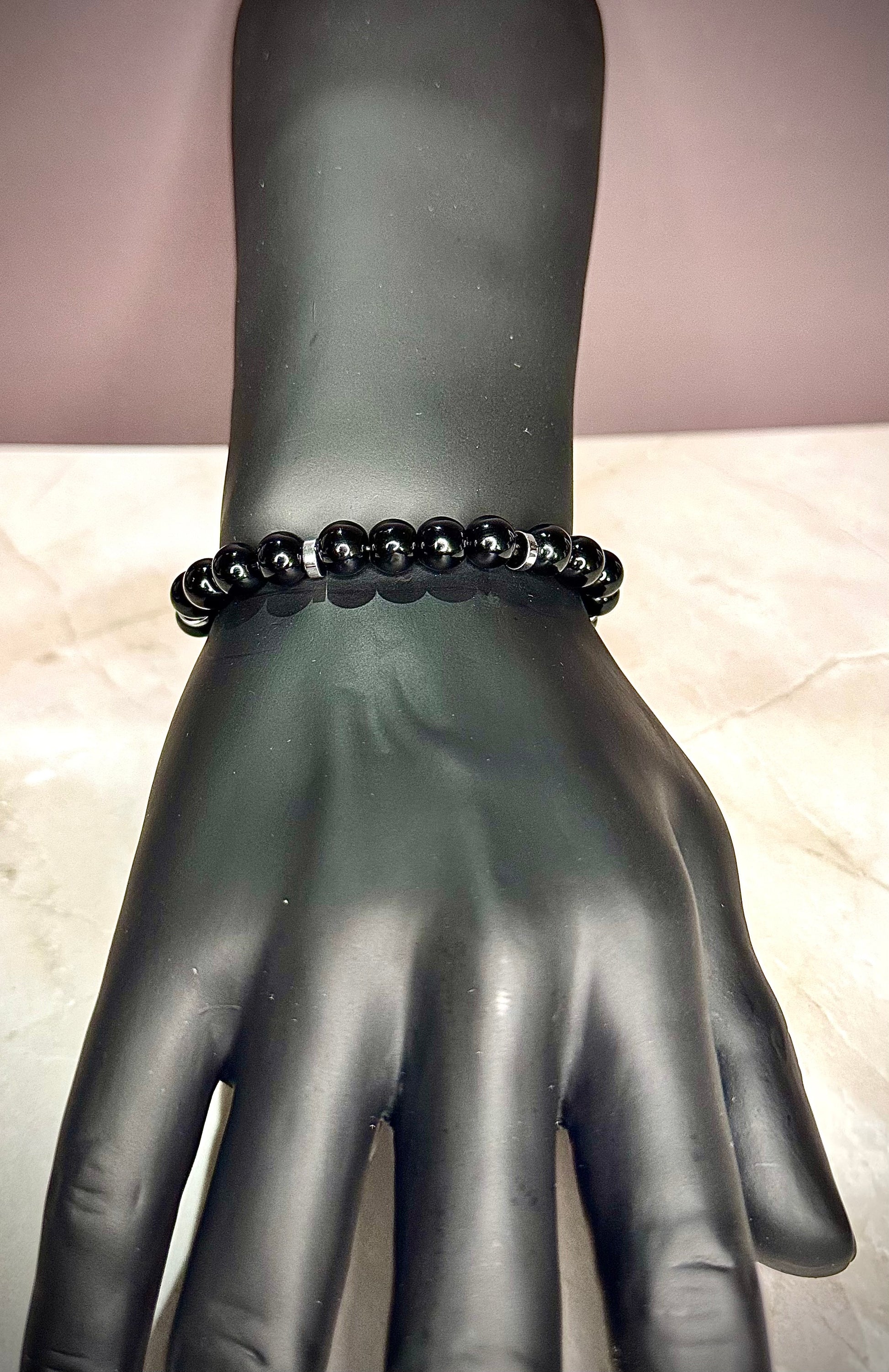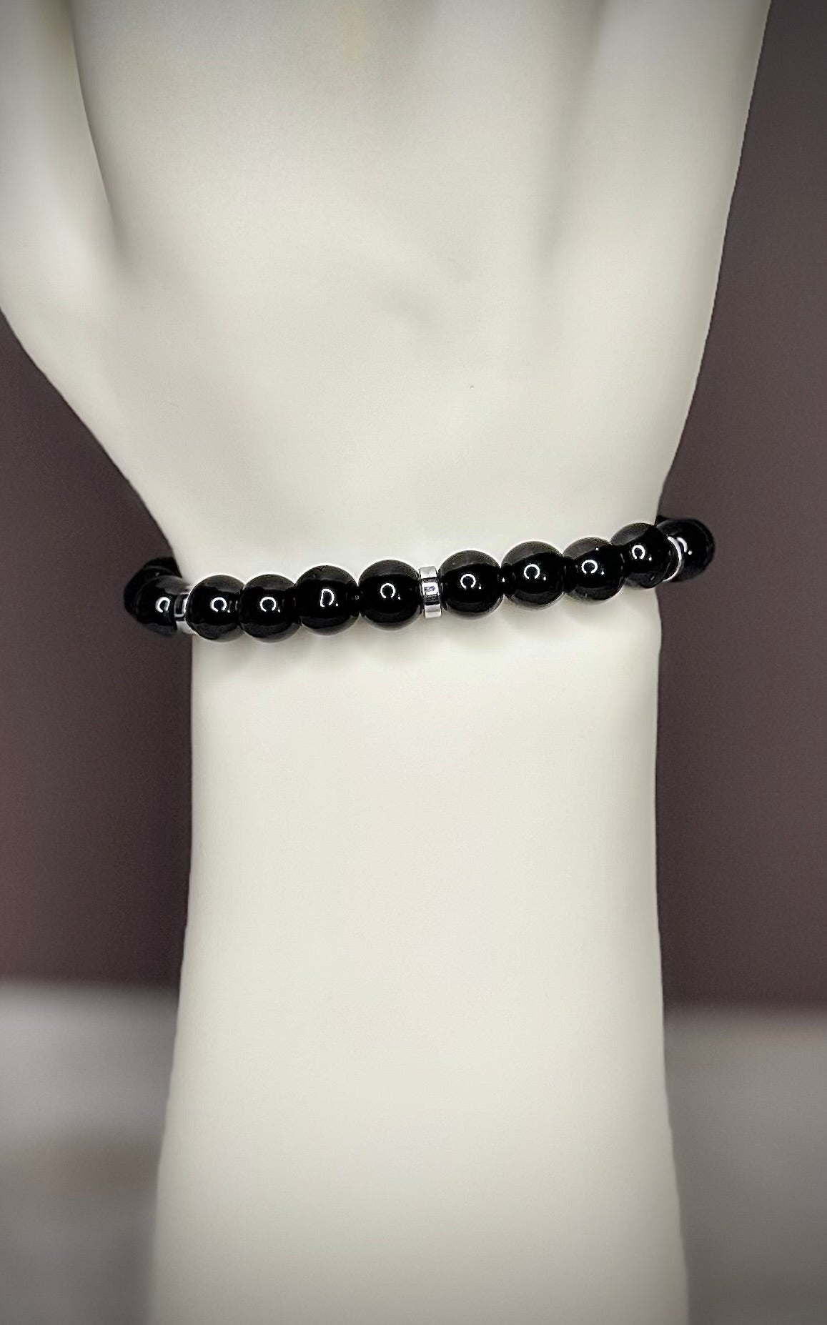 Embrace bold elegance with the Dark Abyss Bracelet, featuring sleek black glass beads accented by polished silver spacers. Mysterious and refined, it’s the perfect statement piece for those who thrive in strength, style, and sophistication.