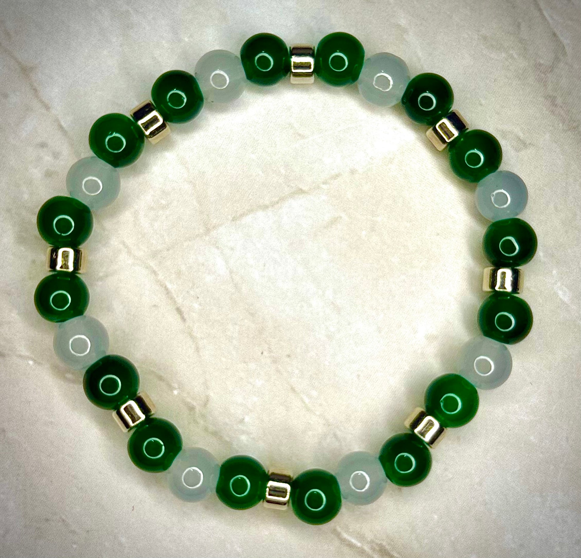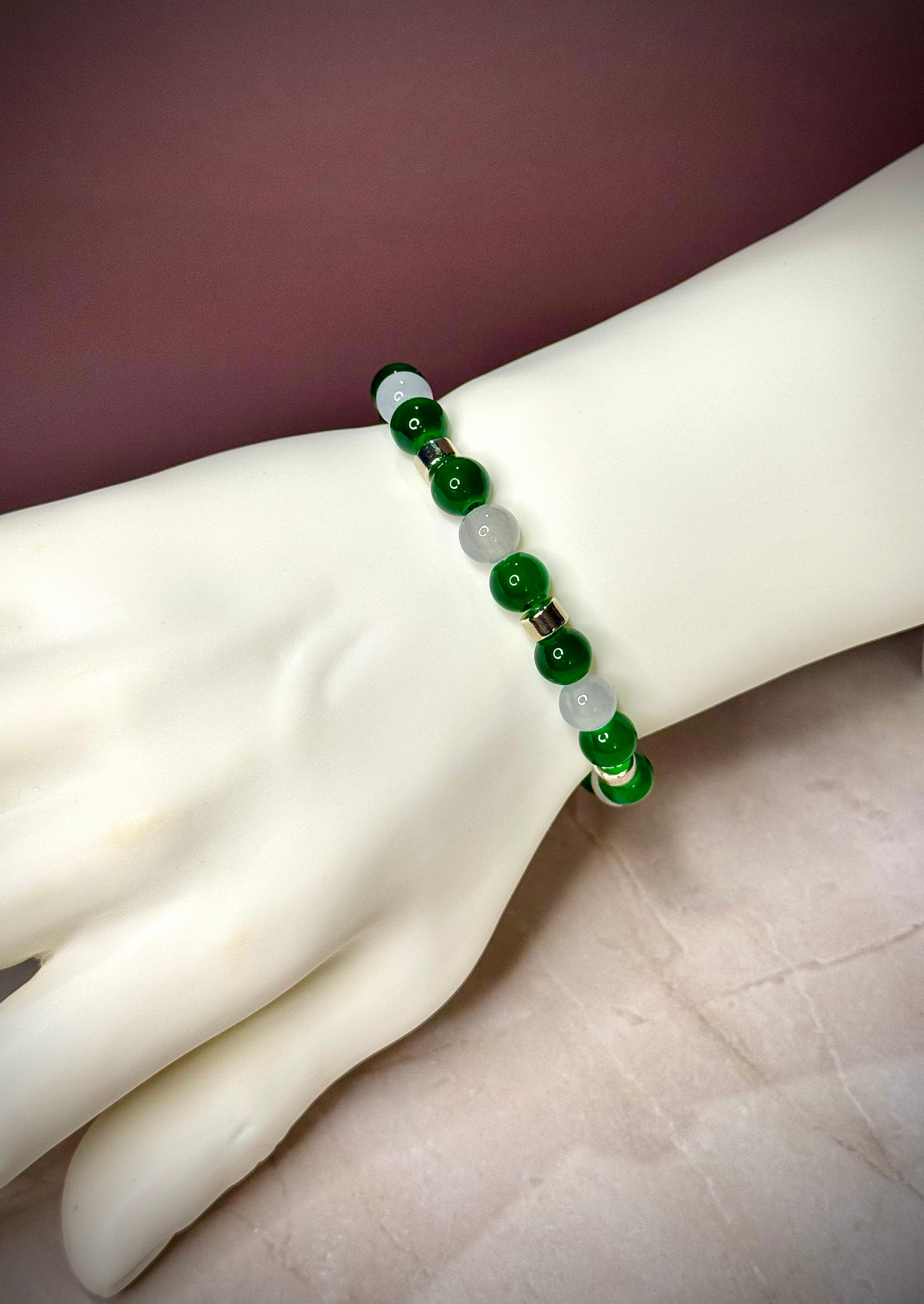 Channel your inner ambition with the House of Snake Bracelet, inspired by the cunning and power of the wizarding world’s most resourceful house. Featuring dark green glass beads, frosted gray accents, and gleaming silver spacers, this enchanting piece embodies elegance, mystery, and pride.